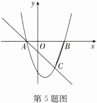 5. 如图,二次函数$y = x^2 - 2x - 3$的图像与$x$轴交于点$A$,$B$(点$A$在点$B$的左侧),与一次函数$y = -x + b$的图像交于$A$,$C$两点,连接$BC$.