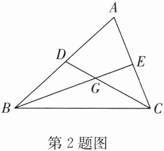 2. 如图,点$G$是$\triangle ABC$的重心,分别延长线段$BG$,$CG$,交边$AC$,$AB$于点$E$,$D$. 若$BE = 15$,则$BG$的长是 (