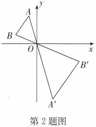 2. 如图,在$\triangle AOB$中,$A$,$B$两点在$x$轴的上方,以点$O$为位似中心,在$x$轴的下方按$1:2$的相似比作$\triangle AOB$的位似图形$\triangle A^{\prime}OB^{\prime}$.设点$B$的对应点$B^{\prime}$的坐标是$(5,-2)$,则点$B$的坐标是