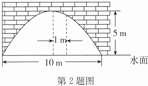 2. 如图,有一座抛物线形的桥洞,桥洞离水面的最大高度为$5\ m$,跨度为$10\ m$,则在桥洞对称轴右边$1\ m$处,桥洞离水面的高度是