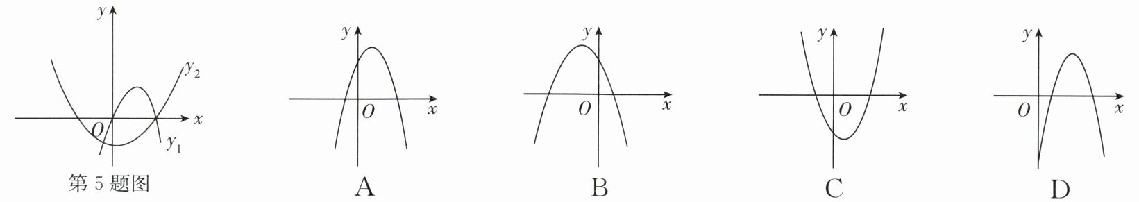 5. (2024·玄武区期末)在平面直角坐标系中,二次函数$y_1,y_2$的图像如图所示,则函数$y = y_1 - y_2$的图像可能是 (
