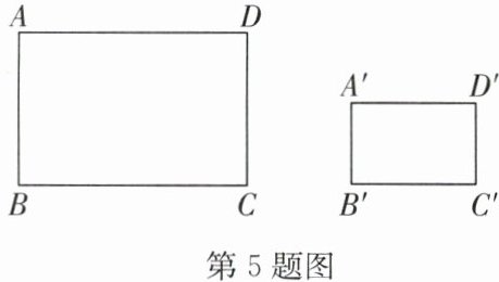 5. 如图,有矩形$ABCD$和矩形$A^{\prime}B^{\prime}C^{\prime}D^{\prime}$,$AB = 8cm$,$BC = 12cm$,$A^{\prime}B^{\prime} = 4cm$,$B^{\prime}C^{\prime} = 6cm$.