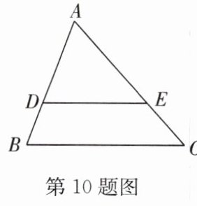 10. 如图,在$\triangle ABC$中,$\frac{AD}{DB}=\frac{AE}{EC}$,$AB = 12$,$AE = 10$,$EC = 5$.