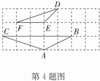 4. 如图,在正方形网格内有两个相似三角形$(\triangle ABC \sim \triangle EDF)$,则$\angle ABC +$