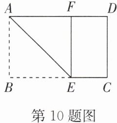 10. 如图,将矩形$ABCD$沿线段$AE$翻折,使点$B$恰好落在边$AD$上的点$F$处,