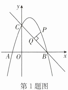 1. 如图,在平面直角坐标系中,抛物线$y = - x^{2} + 2x + 3$与$x$轴交于点$A$,$B$,与$y$轴交于点$C$,作直线 BC.$P$是线段 BC 上方的抛物线上一动点,过点$P$作$PQ \perp BC$,垂足为$Q$,则线段 PQ 的最大值为
