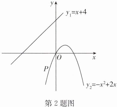 2. 如图是直线$l:y_{1} = x + 4$和抛物线$y_{2} = - x^{2} + 2x$在同一平面直角坐标系中,$P$为抛物线上一动点,则点$P$到直线$l$的距离的最小值为