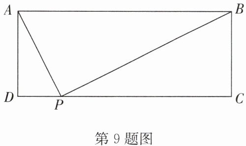 9. 如图,在矩形$ABCD$中,$AB = 10$,$AD = 4$,$P$是$CD$边上的一个动点,则当$\triangle ADP$与$\triangle BCP$相似时,$DP =$
