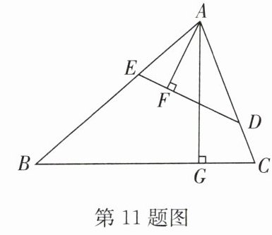 11. 如图,在锐角三角形$ABC$中,点$D, E$分别在边$AC, AB$上,$AG \perp BC$于点$G$,$AF \perp DE$于点$F$,$\angle EAF = \angle GAC$.