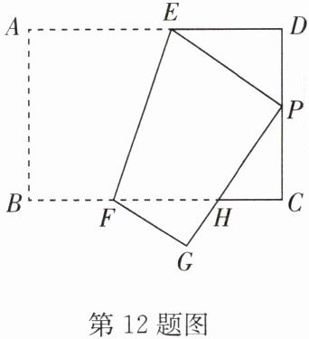 12. 如图,在矩形$ABCD$中,点$E, F$分别在$AD, BC$上,将四边形$ABFE$沿$EF$翻折,使点$A$的对应点$P$落在$CD$上,点$B$的对应点为$G$,$PG$交$BC$于点$H$.