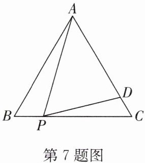 7. 如图,等边$\triangle ABC$的边长为4,$P$为$BC$上一点,且$BP = 1$,过点$P$作$\angle APD = 60^{\circ}$交$AC$于点$D$,则$CD$的长为