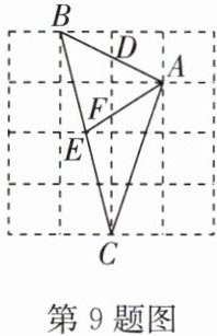 9. 如图,在小正方形边长均为$1$的$4 × 4$的网格中,$\triangle ABC$的顶点均在格点上,边$AB$,$BC$分别与网格线交于点$D$,$E$,连接$AE$,与$CD$交于点$F$,则$CF=$