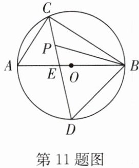 11. 如图,$AB$为$\odot O$的直径,$\triangle ABC$内接于$\odot O$,$BC>AC$,点$P$是$\triangle ABC$的内心,连接$CP$并延长交$\odot O$于点$D$,交$AB$于点$E$,连接$BP$,$BD$.