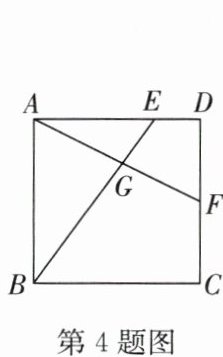 4. 如图,在正方形$ABCD$中,点$E$,$F$分别在边$AD$,$CD$上,$AF$,$BE$相交于点$G$,若$AE = 3ED$,$DF = CF$,则$\frac{AG}{GF}=$ (
