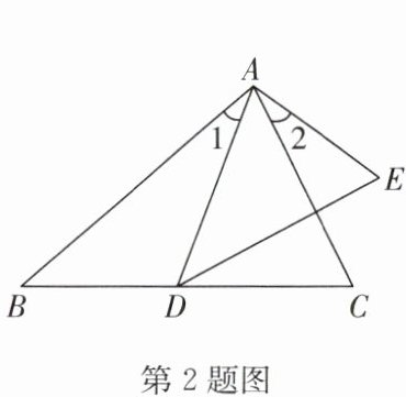 2. 如图,$\angle 1 = \angle 2$,添加下列一个条件后,仍无法判定$\triangle ABC \sim \triangle ADE$的是 (