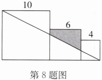8. 如图,边长分别为10,6,4的三个正方形拼接在一起,它们的底边在同一直线上,则阴影部分的面积为