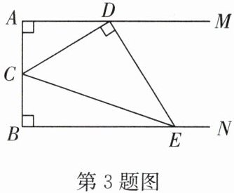 3. (2025·泗洪县一模)如图,$\angle BAM = \angle ABN = 90^{\circ}$,$AB = 4$,C 是线段 AB 的中点,点 D 在射线 AM 上运动,过点 D 作$DE\perp CD$交射线 BN 于点 E,则 BE 的最小值为