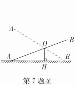 7. 如图,不等臂跷跷板 $AB$ 的一端 $A$ 碰到地面时,另一端 $B$ 到地面的高度为 $60 cm$;当 $AB$ 的一端 $B$ 碰到地面时,另一端 $A$ 到地面的高度为 $90 cm$,则跷跷板 $AB$ 的支撑点 $O$ 到地面的高度 $OH$ 是 (