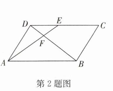 2. 如图,在平行四边形$ABCD$中,$E$为$CD$上一点,连接$AE$,$BD$,且$AE$,$BD$交于点$F$,若$DE:EC = 2:3$,则$S_{\triangle DEF}:S_{\triangle ABF} =$ (