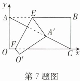 7. 如图,矩形$OABC$在平面直角坐标系中,点$B$的坐标为$(8,4)$,点$E,F$分别在边$AB,OC$上,且$AE=3$,将矩形沿直线$EF$翻折,点$A$的对应点$A'$恰好落在对角线$AC$上,则点$F$的坐标为