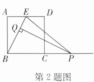 2. 如图,在边长为$2$的正方形$ABCD$中,$E$为$AD$边的中点,$P$为射线$BC$上一动点,过点$P$作$PQ \perp BE$于点$Q$,当$\triangle BAE$与$\triangle PQE$相似时,$BP$的长度为