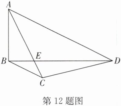 12. 如图,在四边形$ABCD$中,$AB\bot BD$,$BC// AD$,连接$AC$交$BD$于点$E$,$\angle BAC=\angle ADB$,且$\tan\angle ADB=\frac{1}{2}$,$AE=\frac{3}{2}\sqrt{5}$.