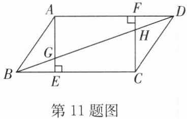 11. 如图,在平行四边形$ABCD$中,$AE\bot BC$,$CF\bot AD$,垂足分别为$E$,$F$,$AE$,$CF$分别与$BD$交于点$G$,$H$,且$AB=2\sqrt{5}$.