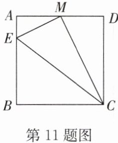 11. 如图,在正方形$ABCD$中,$M$是$AD$边的中点,$BE=3AE$,求$sin\angle ECM$的值.
