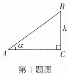 1. 如图,在$\triangle ABC$中,$\angle C=90^{\circ}$,$BC=h$,$\angle A=\alpha$,则$AB$的长为 (