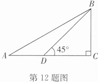 12. 如图,在 $\triangle ABC$ 中,$\angle C = 90°$,点 $D$ 在 $AC$ 上,已知 $\angle BDC = 45°$,$BD = 10\sqrt{2}$,$AB = 20$. 求 $\angle ABD$ 的度数.