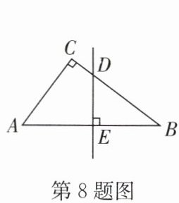 8. 如图,在 Rt$\bigtriangleup ABC$中,$\angle C = 90°$,$AB$的垂直平分线分别交$BC$,$AB$于点$D$,$E$.如果$BC = 8$,$\tan A = \frac{4}{3}$,那么$BD =$