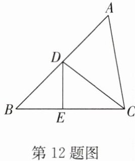 12. 如图,在$\bigtriangleup ABC$,$\angle B = 45°$,$CD$是$AB$边上的中线,过点$D$作$DE\bot BC$,垂足为$E$,若$CD = 15$,$\cos\angle BCD = \frac{4}{5}$.
