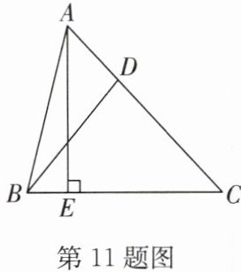11. 如图,$D$是$\triangle ABC$边上的一点,$CD = 2AD$,$AE \perp BC$,垂足为$E$,若$AE = 9$,$\sin \angle CBD = \frac{3}{4}$.