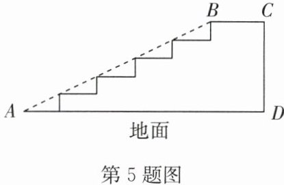5. (2025·闵行区一模)如图是一个学校司令台的示意图,司令台离地面的高$CD$为$2$米,平台$BC$的长为$1$米,用$7$米长的地毯从点$A$到点$C$正好铺满整个台阶(含各级台阶的高),那么斜坡$AB$的坡度是 (