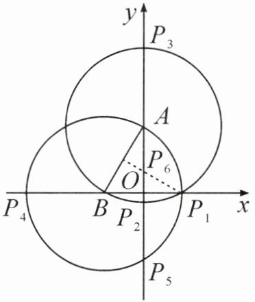 ③ 当 $ AP = BP $ 时,画线段 $ AB $ 的垂直平分线,与 $ x $ 轴有一个交点 $ P_{1} $(与 ① 中重合),与 $ y $ 轴有一个交点 $ P_{6} $。