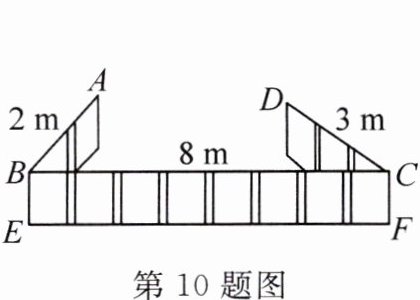 10. 新考向 真实情境 为方便劳动技术小组实践教学,需用篱笆围一块三角形空地,现已连接好三段篱笆AB,BC,CD,这三段篱笆的长度如图所示,其中篱笆AB,CD可分别绕轴BE和CF转动.若要围成一个三角形的空地,则在篱笆AB上接上新的篱笆的长度可以为(