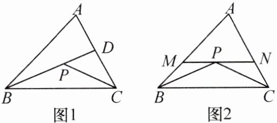 (2)如图2,过点P作直线交AB,AC于点M,N.仿照图1的方法,求证:AB+AC>PB+PC.
