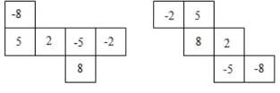 12. 如图,这是一个正方体纸盒的两个表面展开图,请把 -8,5,8,-2,-5,2 分别填入六个正方形中,使得折成正方体后,相对面上的两数互为相反数.