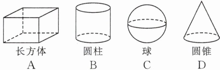2. 围成下列立体图形的各个面中,每个面都是平的是(