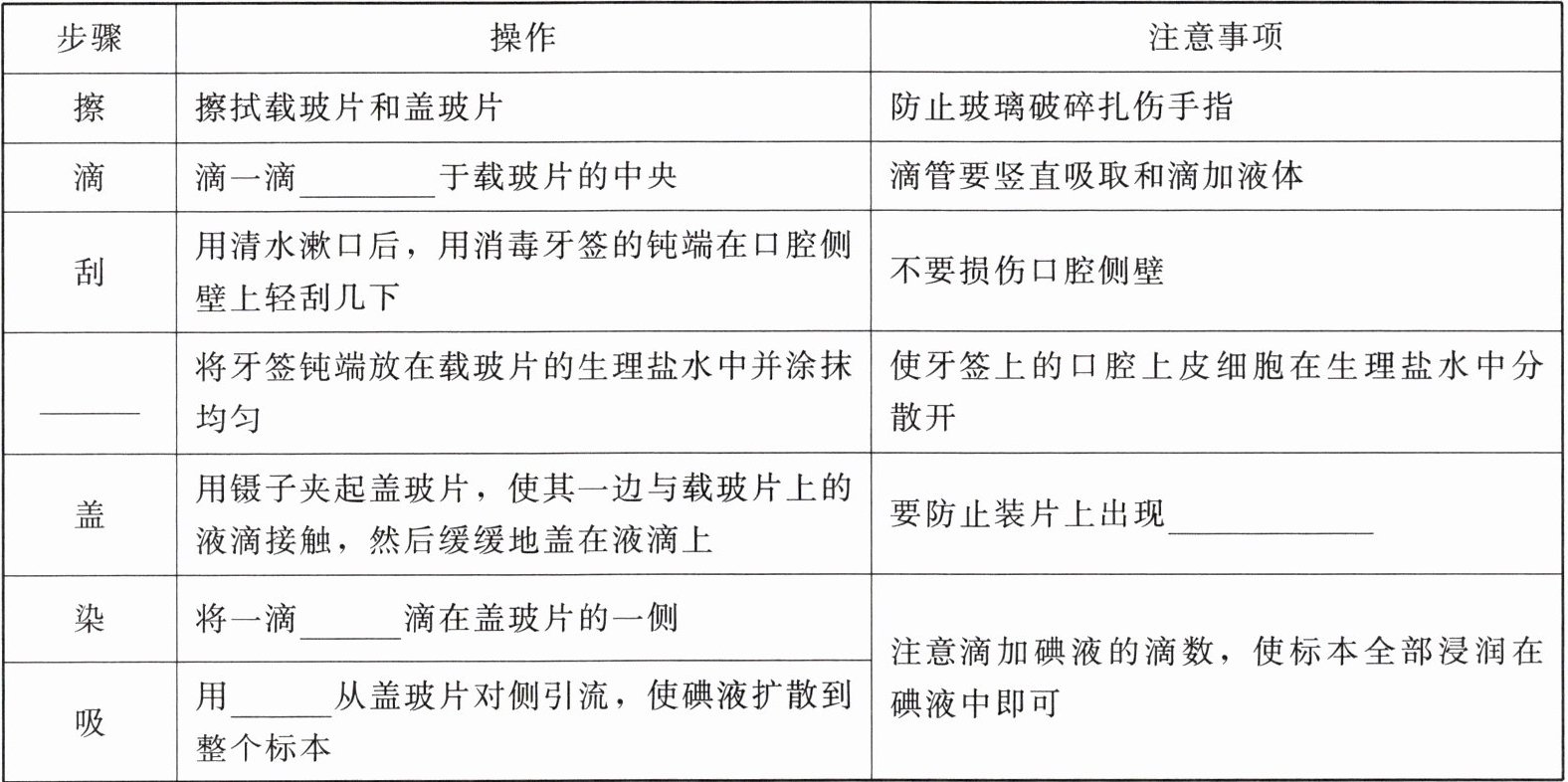 (1)①生理盐水 涂 气泡 碘液 吸水纸