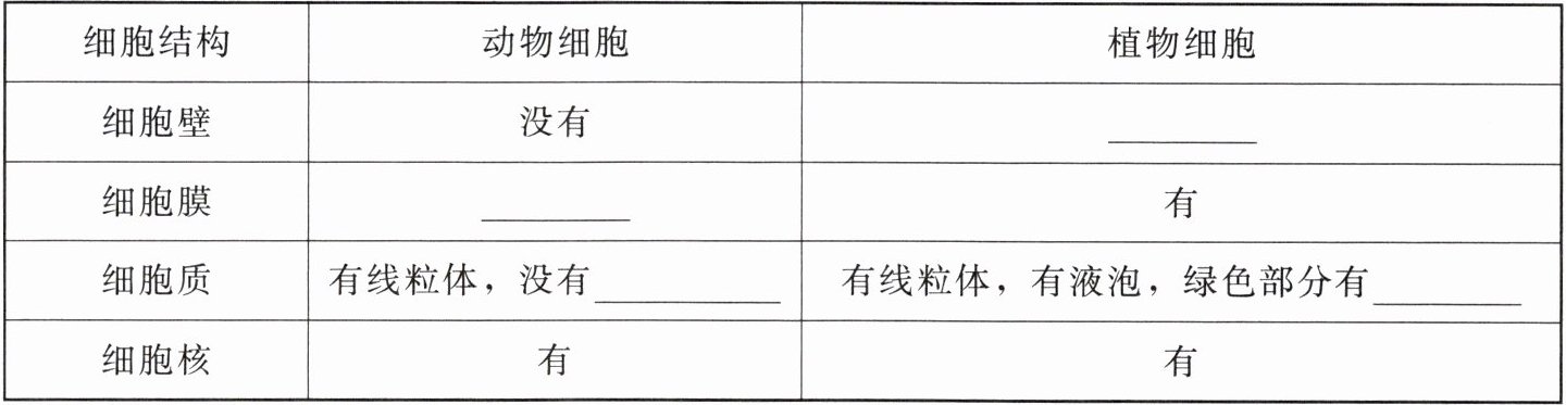 1. 植物细胞具有细胞壁、细胞膜、细胞质和细胞核