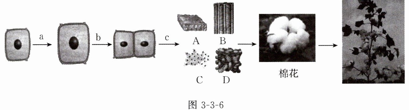 8. (生命观念)新疆棉花拥有较高的品质优势,这使新疆成为了世界上许多服装制造商首选的原材料采购源头。图3-3-6是新疆棉植物体结构层次示意图,请据图回答下列问题。