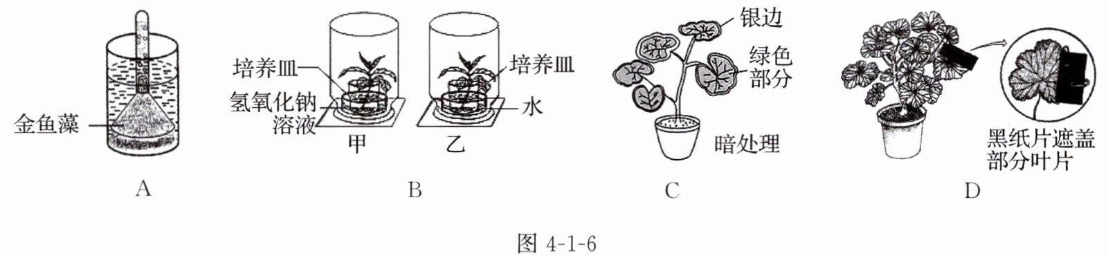 2. 图4-1-6所示实验中,不需要用酒精脱色和用碘液染色验证结果的是(