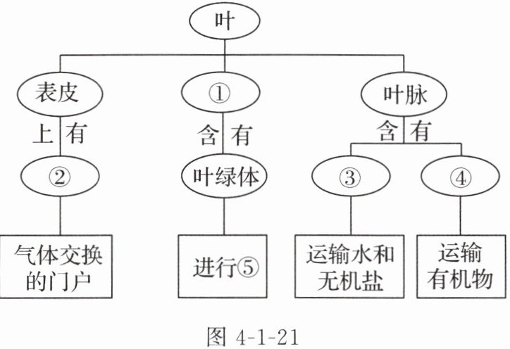 7. 图4-1-21为叶的结构和功能的概念图,请据图回答问题。