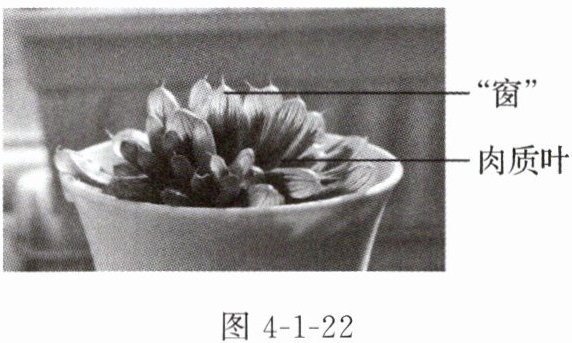 8.(生命观念)玉露(图4-1-22)是一种小型多肉植物,玲珑精致,叶顶端呈透明或半透明状,称为“窗”,就像玉石一般晶莹。某同学种植了一盆玉露,发现它非常耐旱,便探究了其耐旱的原因。据此回答问题。