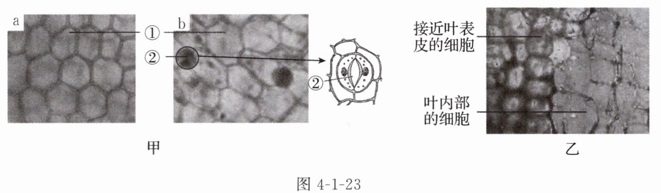 (2)用显微镜观察临时装片,视野如图4-1-23甲所示。玉露的[①]叶表皮细胞排列紧密,属于
