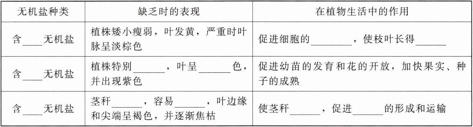 的无机盐。(2)三类无机盐在植物生活中的作用
