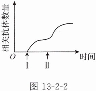 6. 图13-2-2中,Ⅰ和Ⅱ分别表示某种病毒先后两次侵染人体,曲线表示人体产生抗体的数量变化。下列有关叙述错误的是(