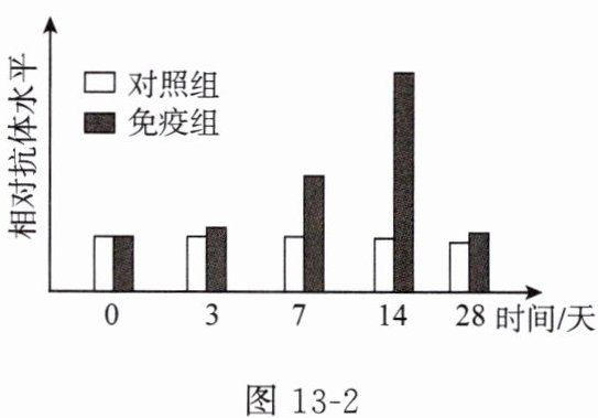 (填“高于”或“低于”)免疫组,证明鳗鱼的死因是感染鳗弧菌。(4)对免疫组体内的鳗弧菌特异性抗体水平进行检测,结果如图 13-2 所示,图中结果表明,免疫组鳗鱼体内发生了