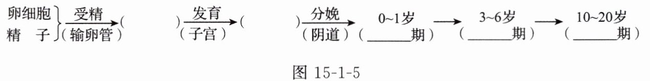 7. 请把图15-1-5所示的人的发育过程填写完整。